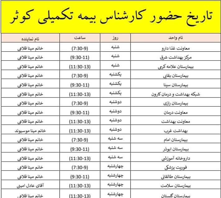 دریافت جدول لیست تعهدات بیمه تکمیلی درمان